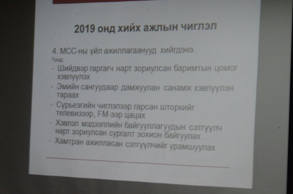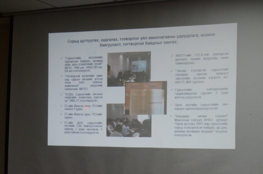 Сургалт уулзалт нь төрийн бус байгууллагуудын 2018 онд хийгдсэн ажлууд, сүрьеэ өвчинтэй тэмцэх, эрт илрүүлэлт, 2019 онд сүрьеэ өвчиний талаар хийгдэх ажлуудын талаар тайлан, мэдээллээр үргэлжлэн явагдлаа.