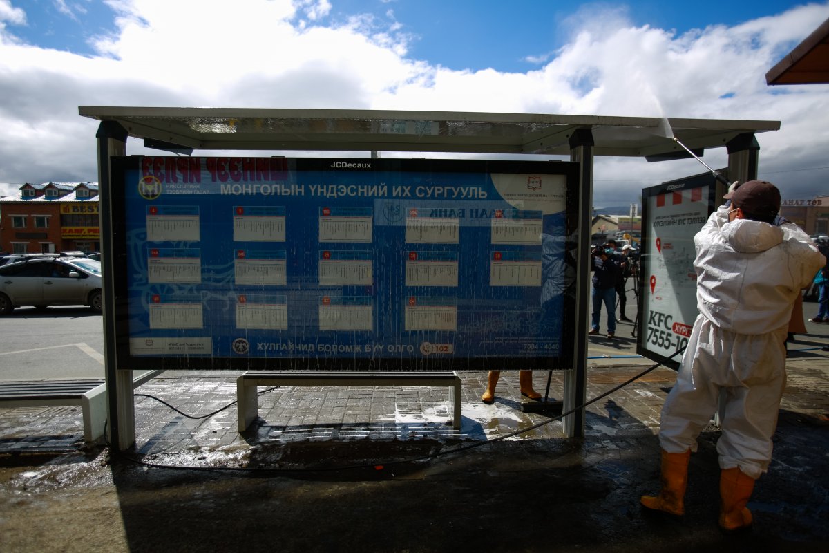 Үүний нэг нь нийслэлээс нийтийн эзэмшлийн гудамж талбайд байрладаг автобусны буудлын сандал, хогийн сав, ТҮЦ-үүдийн өнцөг булан бүрийг ариутгал, халдваргүйжүүлэх тусгай цэвэрлэгээний бодис, шүршигч төхөөрөмжөөр угааж цэвэрлэх ажил хуваарийн дагуу үргэлжилж байна. Тэгвэл энэ ажлын хүрээнд өнөөдөр Баянгол дүүрэгт цэвэрлэгээний ажлыг хийж байна.